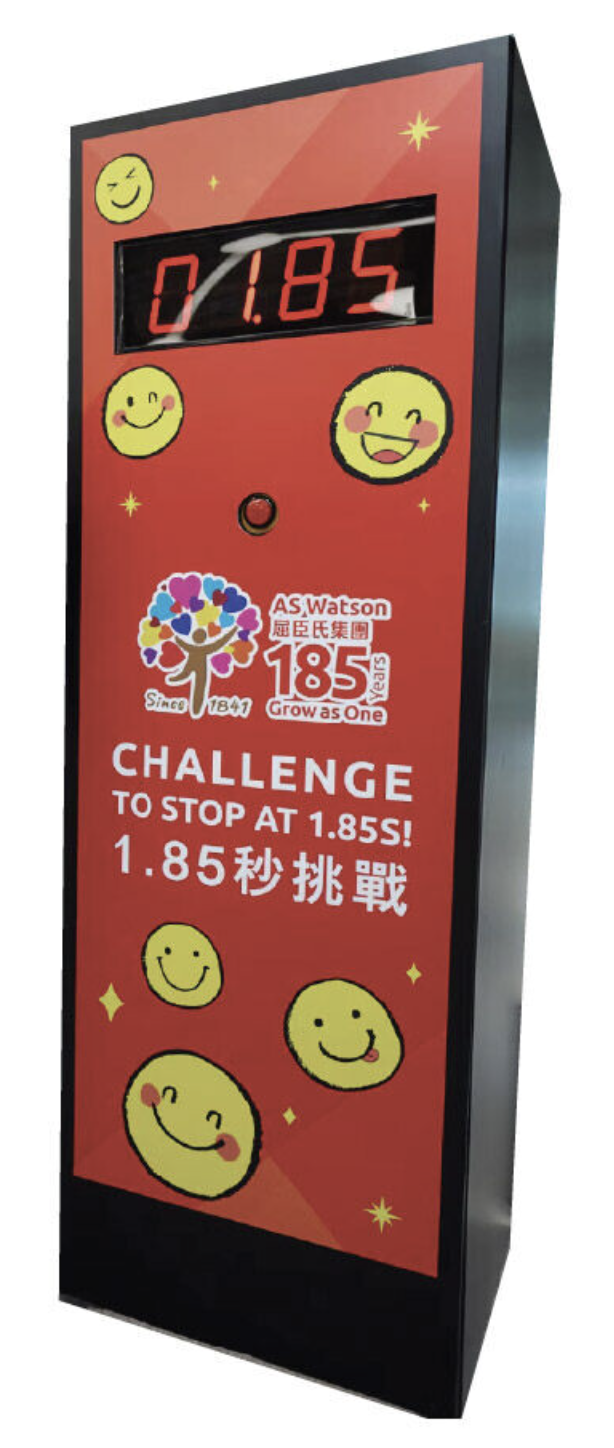 推廣期內於指定門市買滿$185,即可參加「1.85秒大挑戰」一次,只要於遊戲機按中1.85秒,即送精美禮品一份。