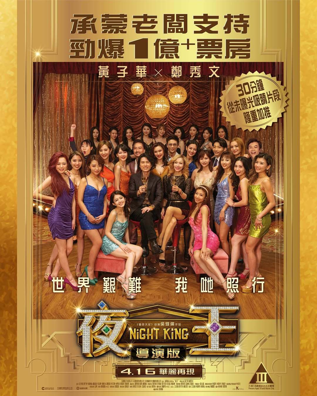 勁破1億+票房,《夜王》越映越旺!感激貴客支持,加料導演版火熱應市!30分鐘從未曝光吸睛片段隆重解封!2012年,昔日風光一時的東日夜總會被惡意收購。在尖東打滾數十年的大經理歡哥(黃子華 飾)與前妻兼公司新任CEO V姐(鄭秀文 飾)強勢聯手,帶領眾女公關作最後反撲,誓要轉型成功﹐企硬尖東﹐打倒大財團的操控遊戲!