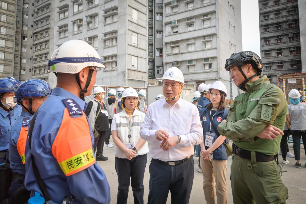 政府每日出動過千名來自不同部門的同事,包括警務處、民安隊、消防處、醫療輔助隊、民政事務總署、社會福利署、房屋署、房屋局和從其他部門動員的人員,以及關愛隊義工,全力支援上樓居民。
