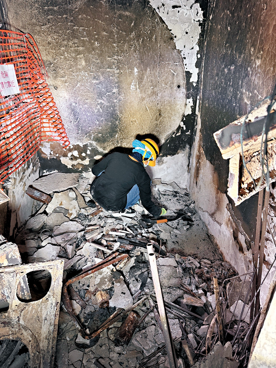 譚先生在17樓擁有相鄰單位,兩個單位獲安排分開在上午和下午時段開放予居民進入執拾。他表示,一家人在宏福苑居住30多年,兩名兒子都在這裏出生,承載眾多家庭記憶。說到一半,他不禁落下男兒淚,其後哽咽地表示,早前已從圖片得悉兩個單位受損非常嚴重,因此已有心理準備,不會有很多物品留存,結婚相等有紀念意義的物品大概已被燒毀。