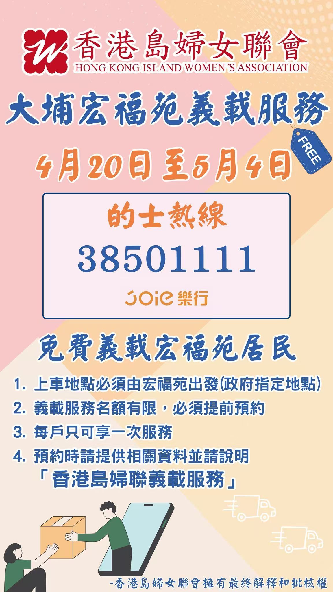 【點新聞報道】大埔宏福苑七座大廈的受災居民自4月20日起分批重返單位執拾物品。香港島婦女聯會推出免費的士義載服務,專門接載完成執拾的居民由宏福苑返回現有居所,聯會呼籲居民踴躍預約,強調車源充足。