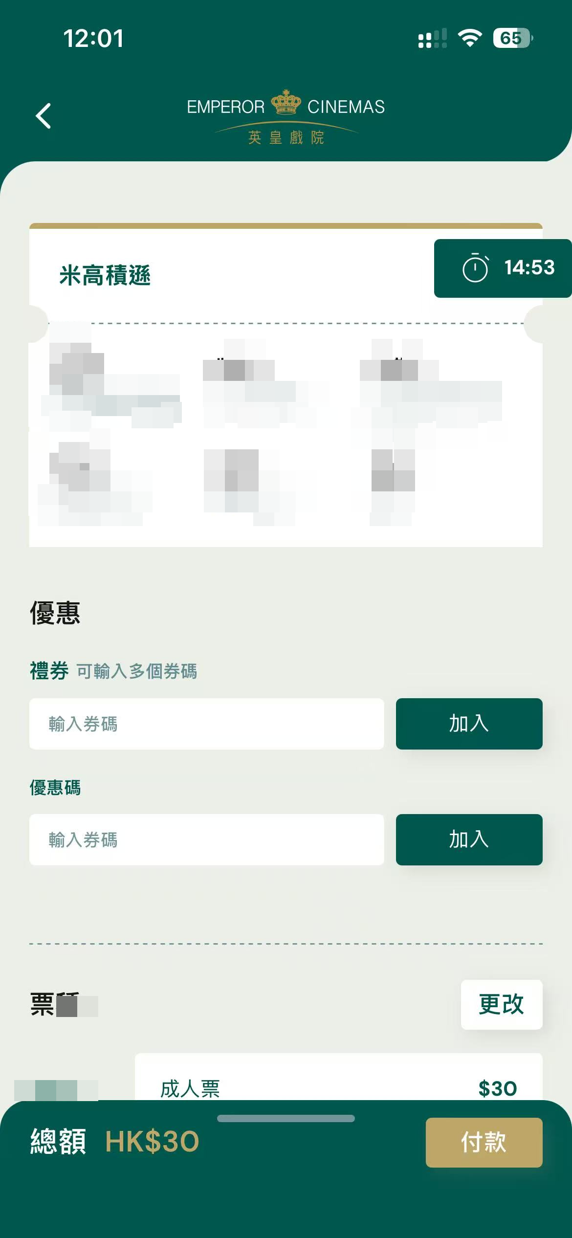 【點新聞報道】「全港戲院日2026」將於4月25日(星期六)舉行,戲飛今午(22日)12時起於相關院線正式開售,戲飛票價劃一30元,每人每次限購4張!點新聞記者今午12時準時進入英皇戲院APP,雖頁面數次顯示「超時錯誤」,但總體一路順暢,僅用兩分鐘購得30蚊《米高積遜》戲飛一張。