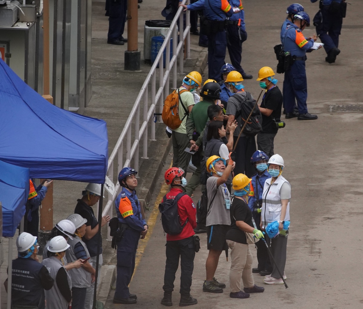廣福社區會堂設有裝備穿戴區,政府已增加桌椅數目,加設帳篷擋雨。