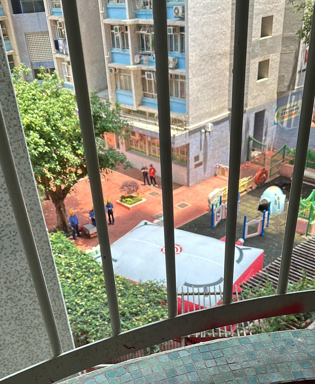【點新聞報道】今日(22日)上午11時許,將軍澳厚德邨德安樓一名男子攀出高層單位的窗外,身處冷氣機頂的石屎簷篷上,他掛出一幅寫有紅色字句的白布,狀似「血書」。其間事主一度情緒激動,險象環生。