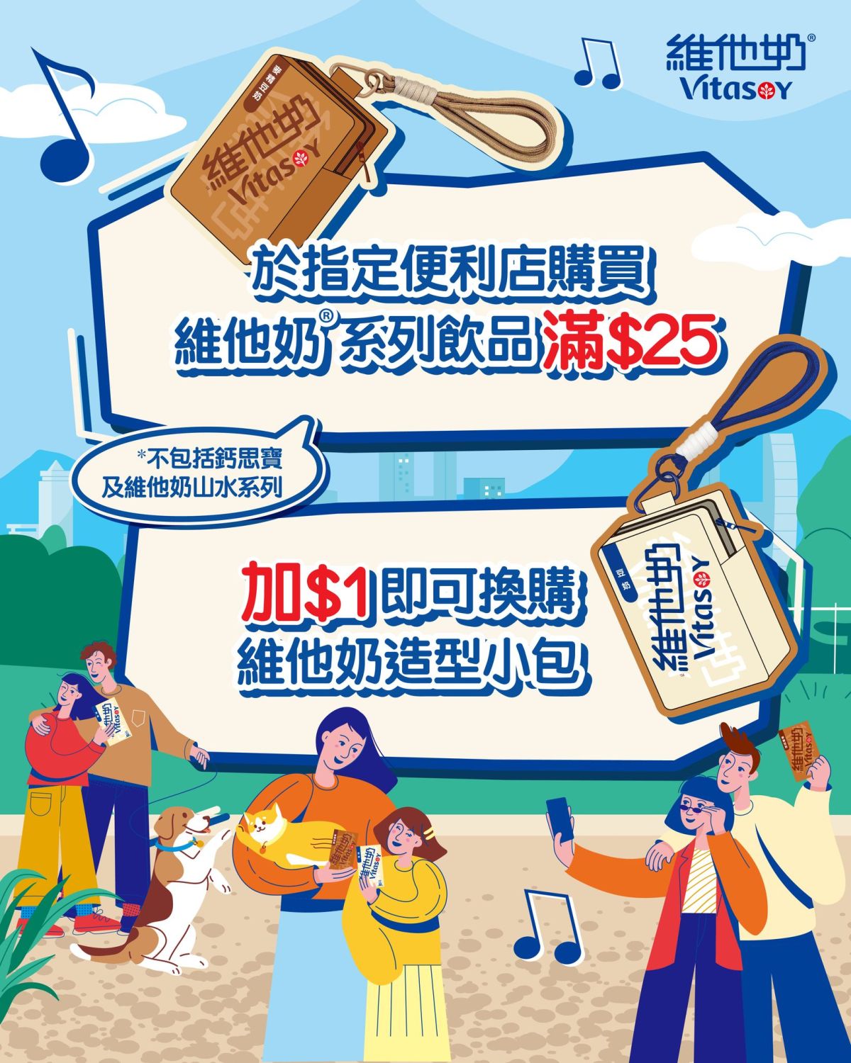 價格:購買維他奶系列飲品滿$25,加$1即可換購「維他奶造型小包」1個