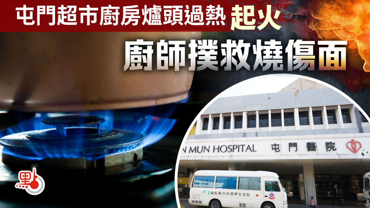 【點新聞報道】今晨(22日)8時56分,一名姓鍾廚師(45歲)在屯門市廣場內一間超市的廚房煮食時,懷疑爐頭過熱着火,他在撲救時燒傷面部,由同事協助報案。事主其後由救護車送往屯門醫院治理。