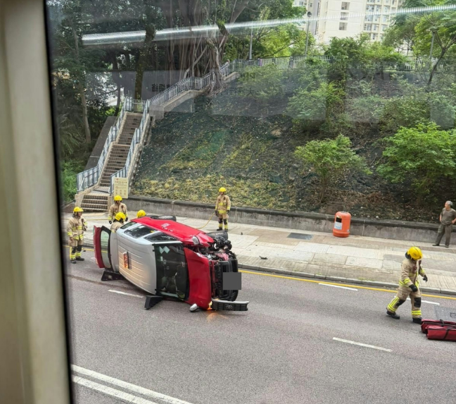 葵涌一的士自炒翻側泵把半脫落 司機乘客一度被困