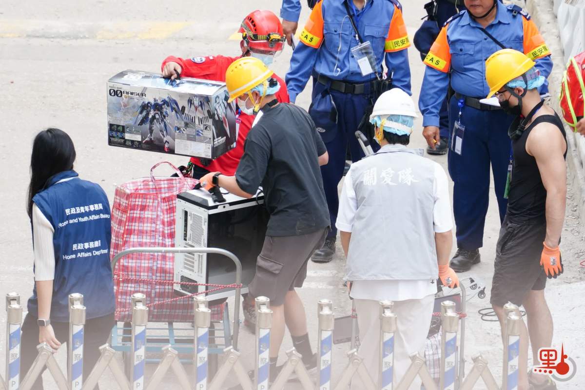 宏福苑法團管委會委員江祥發居於宏仁閣6樓,指單位內光線較暗,冀可設置大型LED燈輔助照明。他表示單位內物品繁多,3小時並不充裕,「執咗10袋、10幾袋」,「好感激前線警務人員同埋民安隊師兄幫手」。
