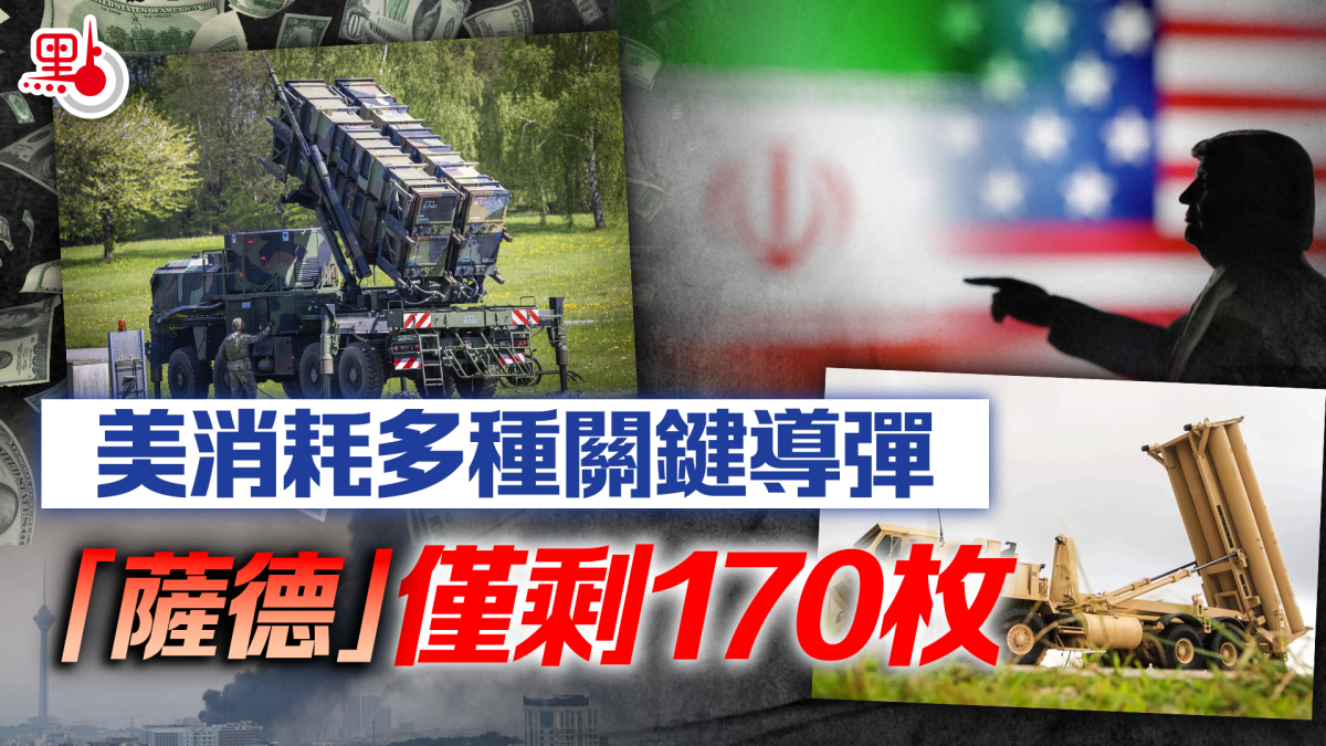 【點新聞報道】美國智庫戰略暨國際研究中心(CSIS)21日發表報告,顯示美軍在對伊朗進行長達7周的軍事行動中,大量消耗多種關鍵導彈庫存,當中包括約50%的愛國者導彈及逾一半的薩德系統庫存。美媒報道,總統特朗普政府此前提出1.5萬億美元(約11.7萬億港元)史上最巨額的國防預算中,有300億美元(約2,350億港元)將用作補充相關彈藥的庫存。