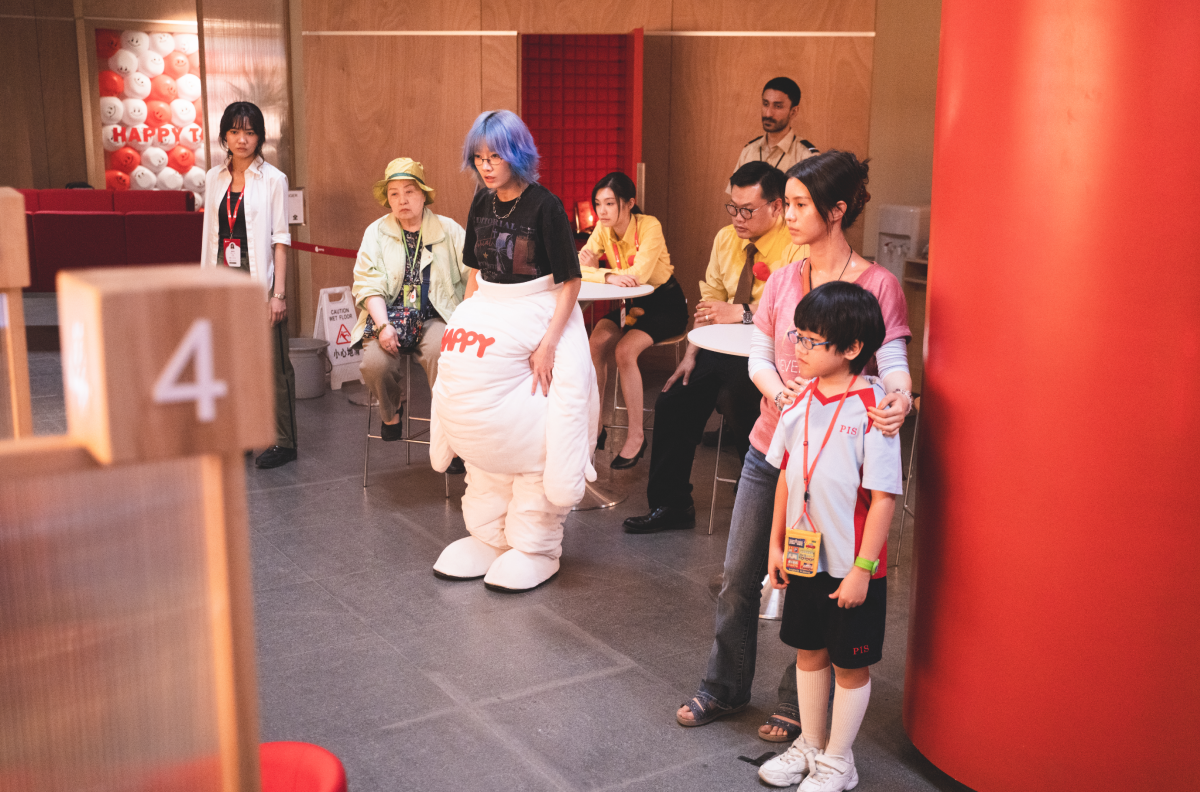 其中,廖子妤在片中大膽轉型,飾演一位「轉數較慢」的動漫迷宅女,她為角色特意染上鮮豔藍髮並漂眉,造型與以往截然不同,更需要頂住高溫穿上電視台吉祥物的人偶裝。她笑言:「今次真係要放開自己,宅女嘅外表下,其實有很多內心獨白同爆發場面,對我嚟講係全新嘅挑戰。」首度與導演麥天樞合作,她坦言充滿新鮮感:「今次電影角色眾多,而入面又有好多群戲,所以導演喺處理場面調度時,都好清晰指引每個角色嘅情緒轉變,包括我嘅角色唔會好輕易表露情感,但係又要俾觀眾感受到變化,所以呢個體驗係相當有趣。」