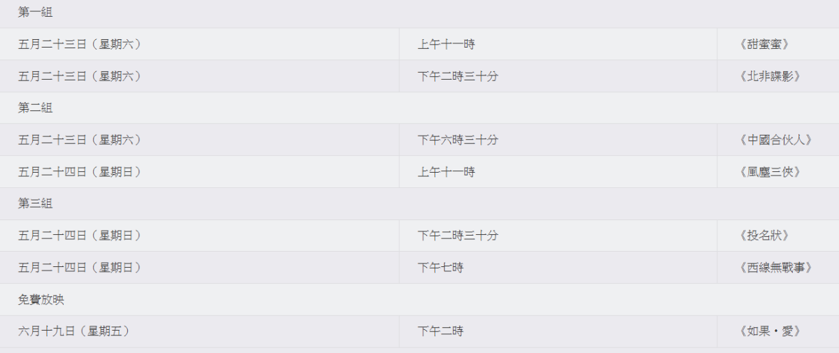 是次選映的六部電影分別組成三對放映組合;