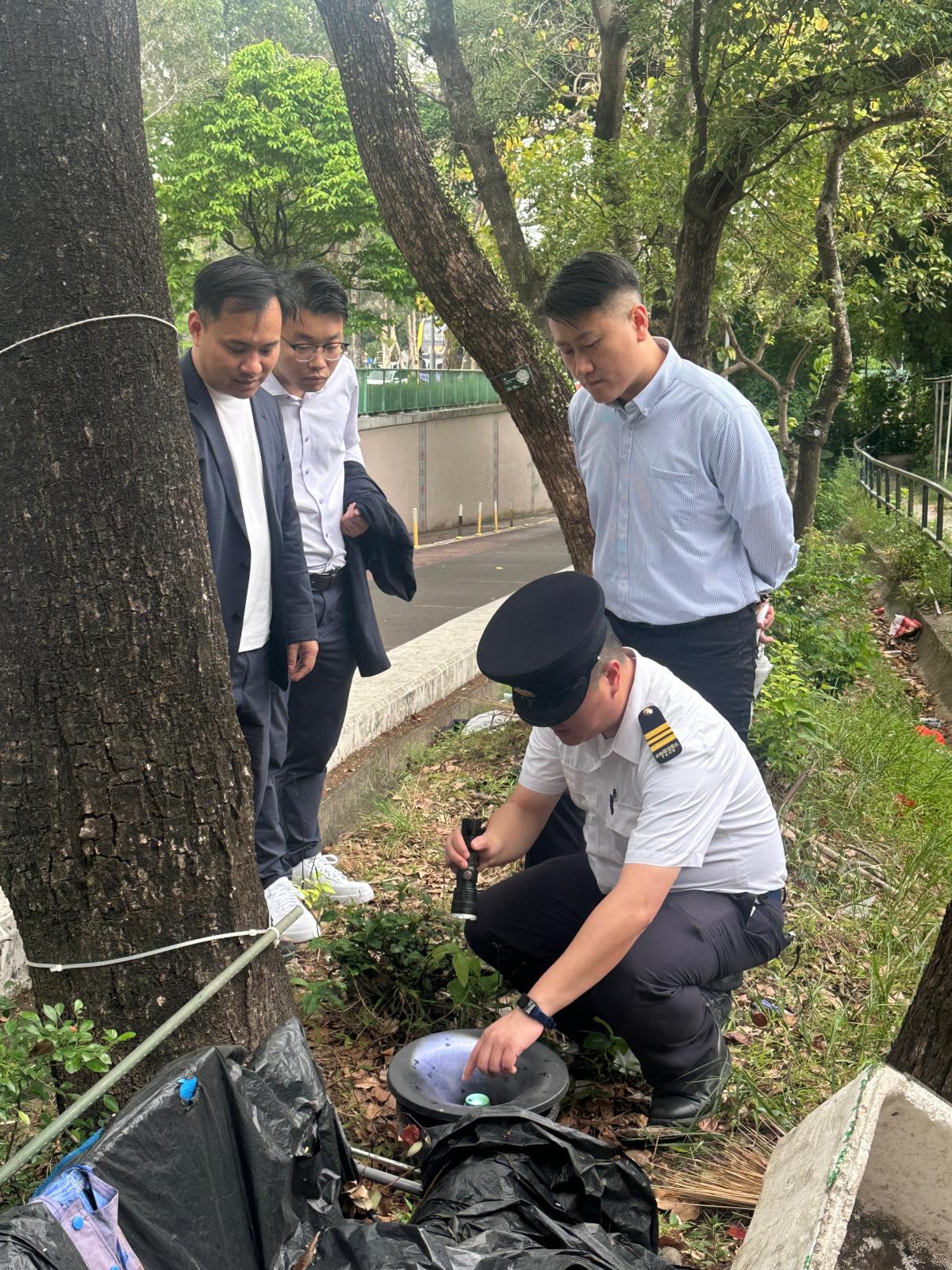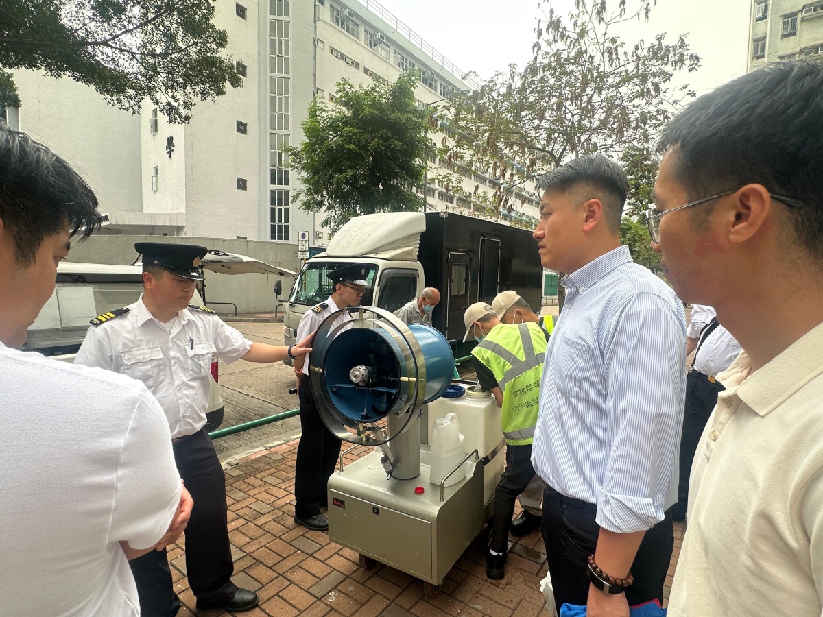 姚銘今日與民建聯區議員曾興隆、吳耀祖、胡景鵬、高維基、柯倩儀,以及社區幹事賴昊陽,在現場詳細了解署方的防蚊資源部署。據悉,食環署目前在上水設置了約60多個滅蚊杯,以及合共19部滅蚊機(包括13部太陽能滅蚊機及6部石油氣滅蚊機),透過「蚊子陷阱」監測並捕捉蚊蟲。此外,署方每逢星期一、三、五進行霧化滅蚊,姚銘今日亦特別了解霧化機的操作細節,促請署方在指數高企期間,檢視是否有需要針對衞生黑點,加密噴灑次數及加強清理工作。