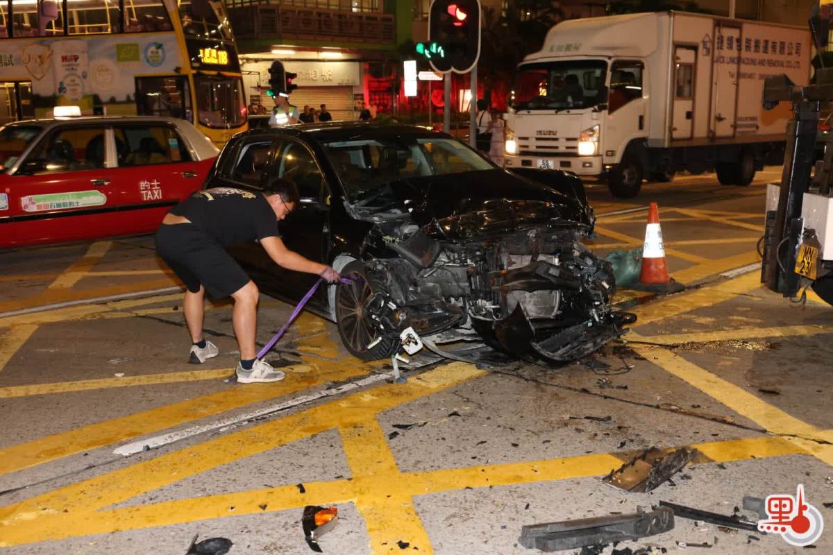 事故造成兩名救護員受傷,其中一人臉部及手痛,另一人頸痛,私家車上亦有一名乘客口部受傷,3人清醒送往明愛醫院治理。警員向兩名涉事司機進行酒精呼氣測試,其中36歲私家車男司機未能通過酒精呼氣測試,涉嫌酒後駕駛罪名被捕;案件交由西九龍交通意外調查組第二隊跟進。
