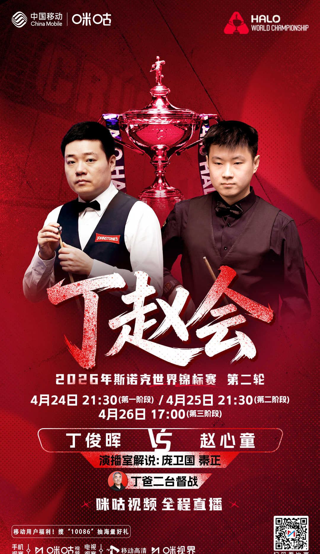 【點新聞報道】北京時間4月24日晚,2026年斯諾克世錦賽將在英國謝菲爾德克魯斯堡劇院迎來歷史性一刻。丁俊暉會師衛冕冠軍趙心童,兩名中國選手將在1/8決賽上演一場備受矚目的「中國德比」。