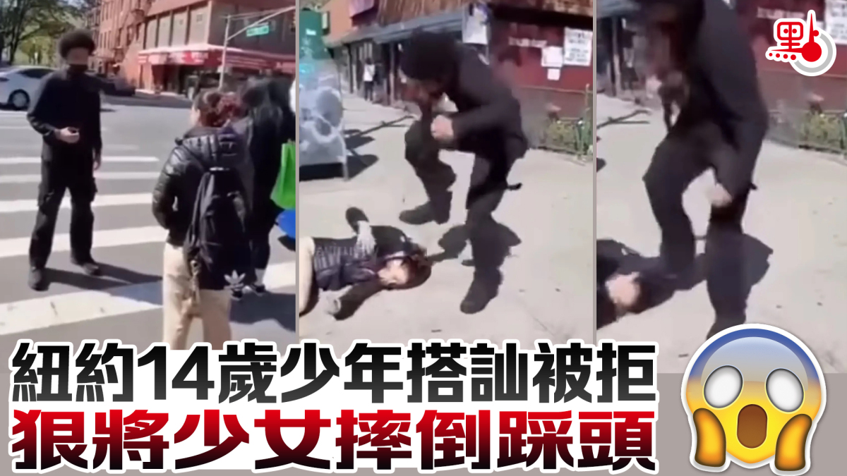 【點新聞報道】美國紐約街頭發生暴力事件,一名青少年在一名少女拒絕給他電話號碼後,竟將她摔倒在地並踩踏她的頭。