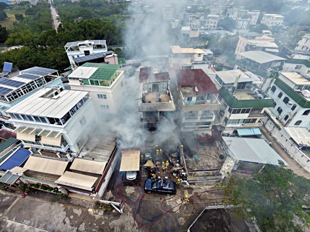 【點新聞報道】今日(26日)中午約12時43分,八鄉上村一間村屋起火。網上片段可見,現場大量濃煙衝上半空,並一度傳出爆炸聲。消防員到場立即出動一隊煙帽隊開喉灌救,其後將火救熄。