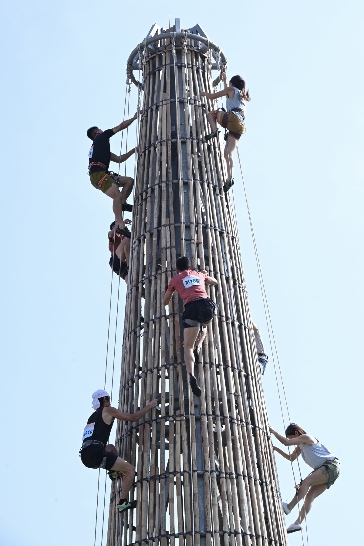 【點新聞報道】87名「搶包山比賽」的參賽者今日(26日)在長洲北帝廟遊樂場足球場參加選拔賽,爭取以最短時間攀登約14米高的包山架。經過一番激烈角逐後,12名健兒成功躋身5月24日晚「搶包山決賽」。去年「包山王」郭嘉明及「包山后」龔子珊成功入圍決賽,繼續爭奪今年男、女子組冠軍之位。