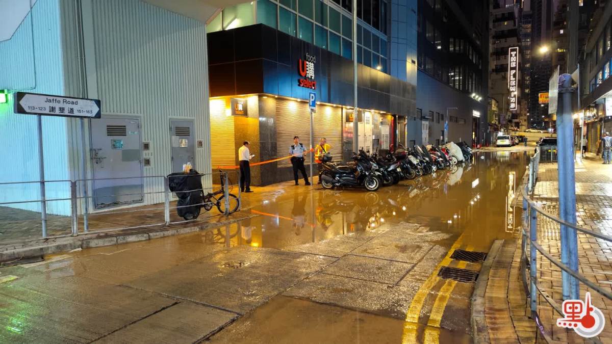 【點新聞報道】今日(26日)晚上約9時,警方接報指灣仔謝斐道近柯布連道有水管爆裂。由網上片段可見,現場謝斐道介乎菲林明道至柯布連道之間一段路面被湧出的黃泥水淹浸,路邊電單車泊位有近20部電單車被泥水圍困,水深一度約半呎,附近大廈停車場亦放置沙包和水閘以防泥水湧入。