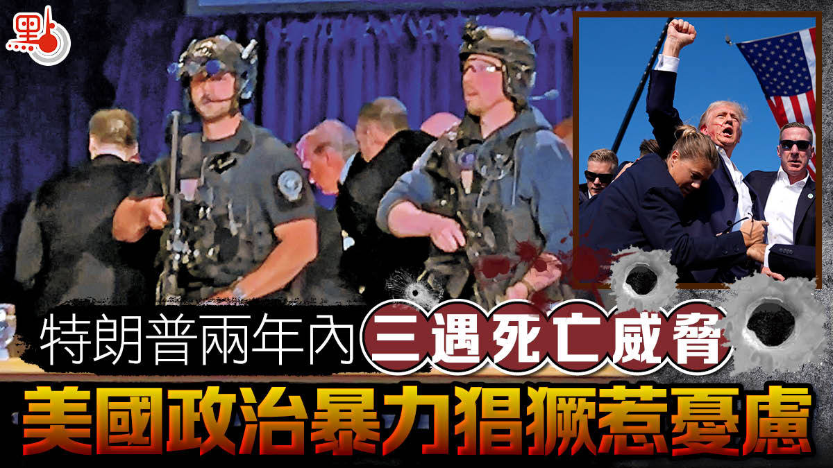 【點新聞報道】美國總統特朗普再遇槍擊事件,這是繼前兩次暗殺未遂後,兩年來第3度面對死亡威脅,他亦是史上遭受攻擊次數最多的美國總統之一,事件再度引發外界對美國政治暴力問題的疑慮。