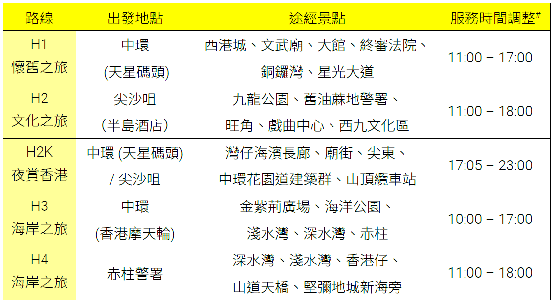 旅遊路線加強服務及延長服務時間