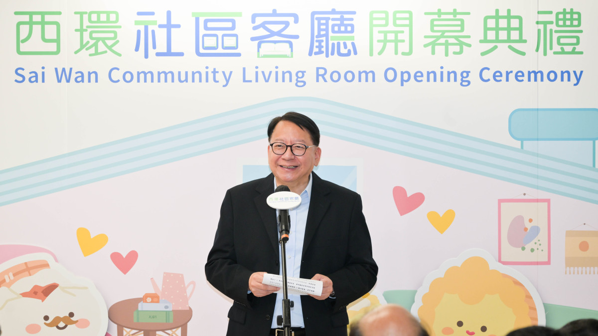 【點新聞報道】西環社區客廳今日(27日)正式開幕,是繼今年2月啟用的西營盤社區客廳後,中西區第二個社區客廳。政務司司長陳國基出席開幕禮並致辭時介紹,西環社區客廳實用面積約3000平方呎,預計可以為380個「劏房」家庭提供服務,全年接待約5.7萬人次;連同同區的西營盤社區客廳,兩間社區客廳全年可以為區內街坊提供合共約9.4萬人次的服務。