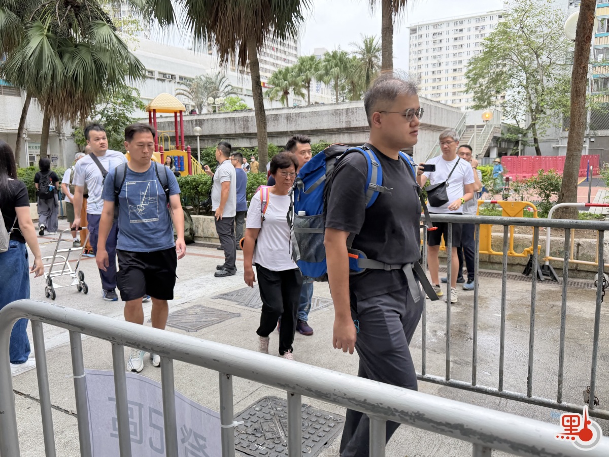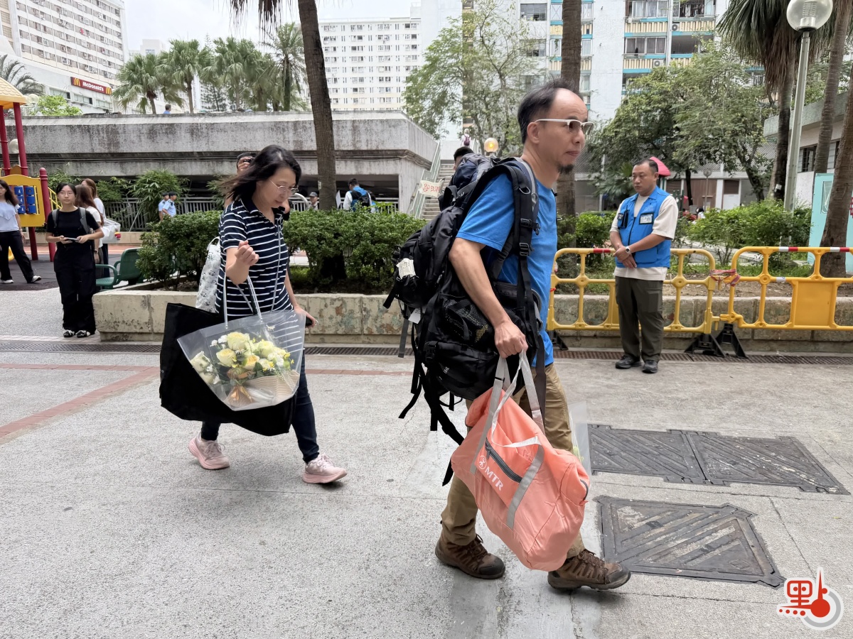 點新聞記者今早在廣福社區會堂附近觀察所見,有不少居民輪候上樓,當中部分人背着登山包或拉着手推車,亦有市民攜帶花束。居民進入登記區後,均由社工帶領排隊,社區會堂亦在戶外特設座椅,供等候的居民休息。