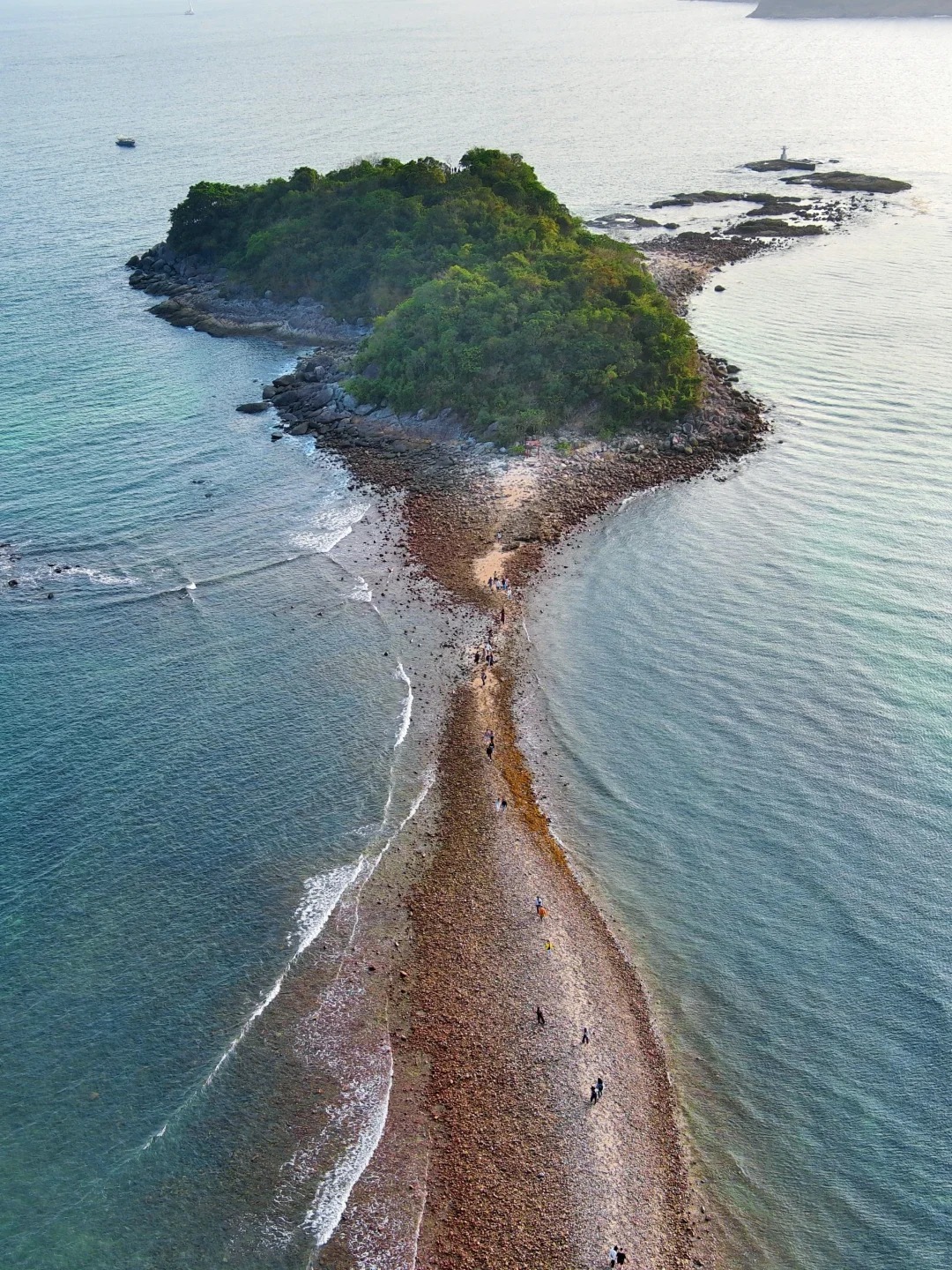 潮退時出現的礫石徑,假日單日人潮可達數千人。遊客若對潮汐時間缺乏認識,潮水上漲時沙洲迅速被淹沒,強行涉水極易被水流沖倒。