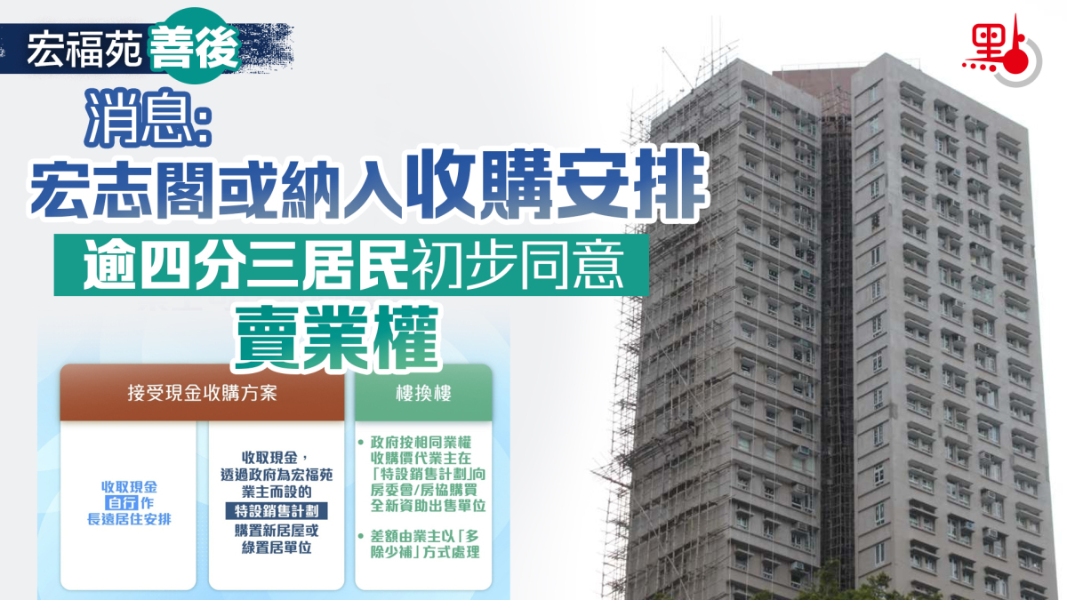 【點新聞報道】據傳媒今日(28日)引述消息報道稱,大埔宏福苑宏志閣有望納入政府收購方案,與另外七幢受火災影響大廈一同參與長遠居住安排方案。據悉大約有超過四分之三宏志閣居民初步同意將業權賣給政府。