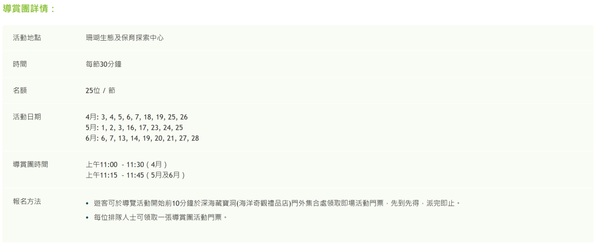 海洋公園|珊瑚生態及保育探索中心導賞團(點此查看詳情)