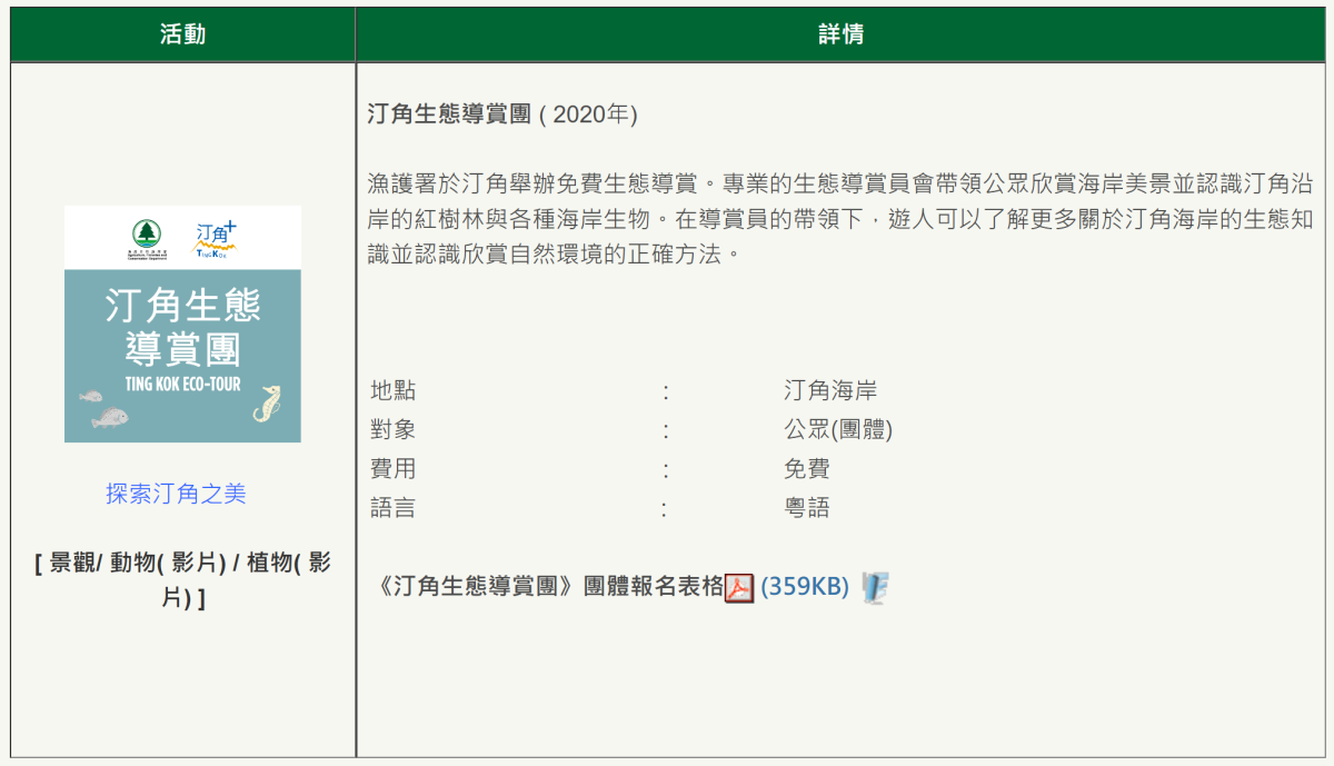 漁護署|汀角海岸生態導賞團(點此查看詳情)