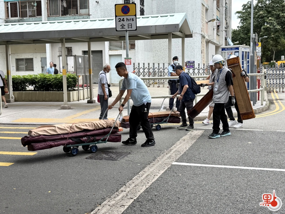 點新聞記者於上午11時半在現場見到陸續有居民執拾完畢後離開,部分居民在社工、警務人員及關愛隊的協助下使用推車搬運大型物件,當中包括行李箱、紅白藍膠袋以及逾十部古箏等,有居民向記者表示「執拾後一切安好」。