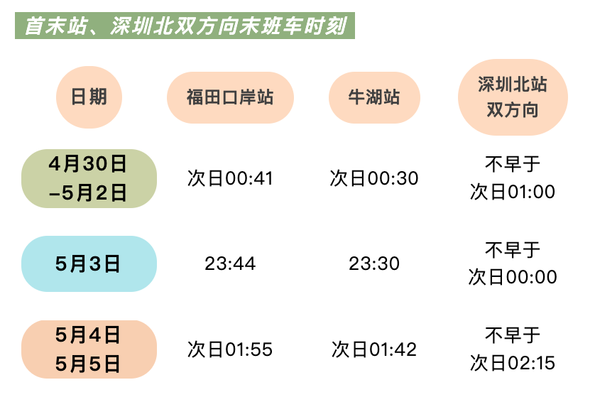 【點新聞報道】「五一」假期將至,越來越多港人選擇北上遊玩。為保障市民及遊客假期便捷出行,深圳地鐵提醒,「五一」期間地鐵4號線、13號線將延長服務時間,需要留意末班車出發時間。