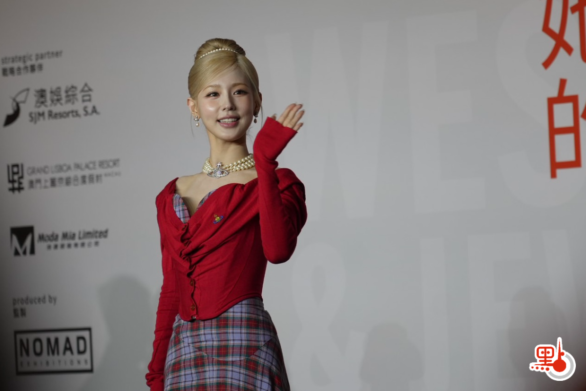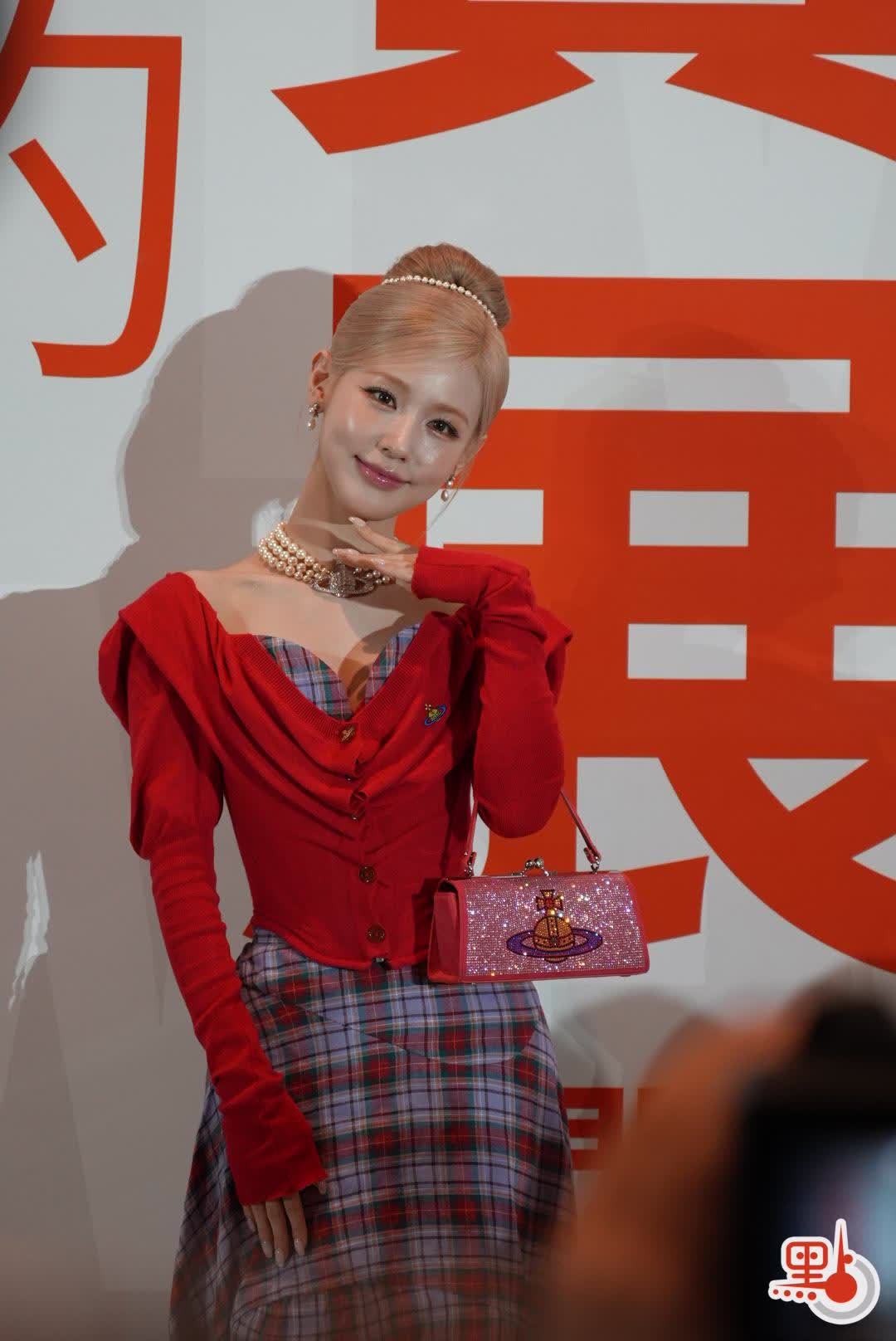 當晚7時許,Miyeon以身穿紅色上衣及格仔裙,搭配「西太后」三層珍珠項鏈亮相活動現場,引得一眾粉絲尖叫聲不斷。她以流利的粵語介紹自己「大家好,我是Miyeon」,並向現場遠道而來的粉絲揮手打招呼,又大方比心,擺出各樣pose,盡顯其可愛迷人一面。