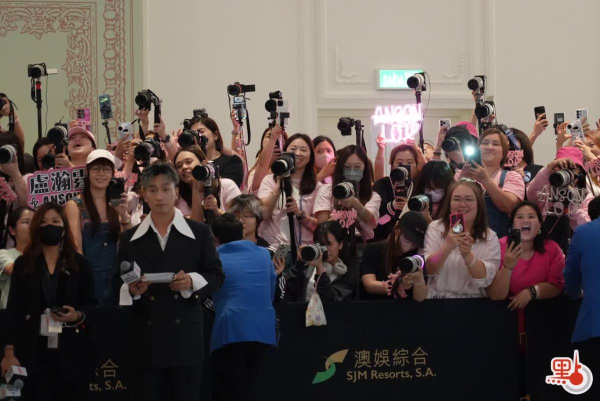 Anson Lo則以一身短袖開衫搭配黃黑條紋長褲現身,一舉一動同樣引發全場轟動。Anson Lo邊走邊向粉絲揮手,扮鬼馬表情,令粉絲非常興奮,高呼他的名字。