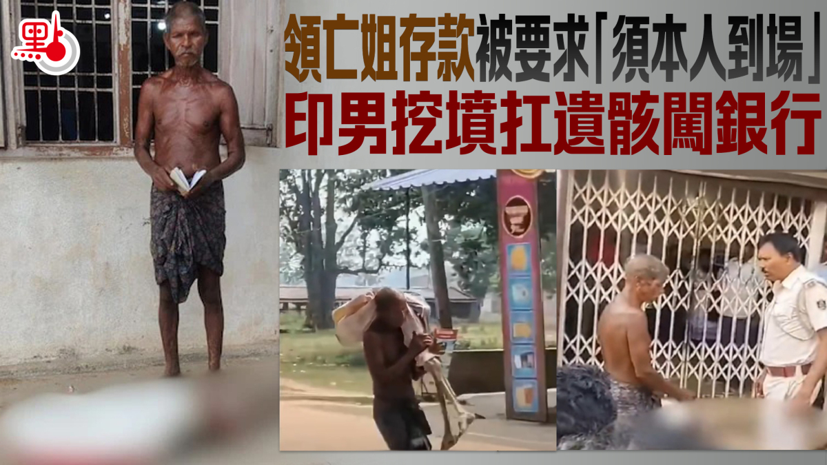 【點新聞報道】印度奧里薩邦近日發生一宗震驚社會的事件。一名貧困男子因長期無法從銀行領取已故姐姐的存款,竟在絕望之下挖出姐姐遺骸,直接帶往銀行「證明已死亡」,事件引發當地警方與政府介入處理。