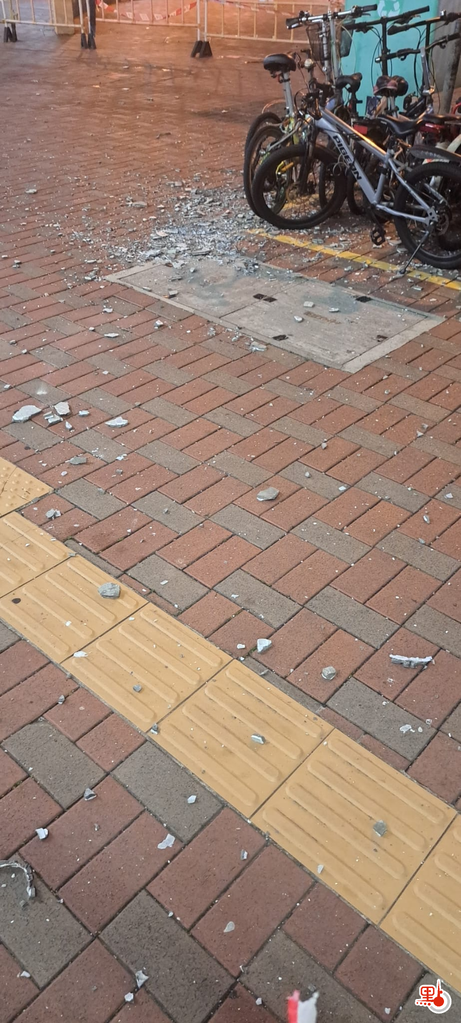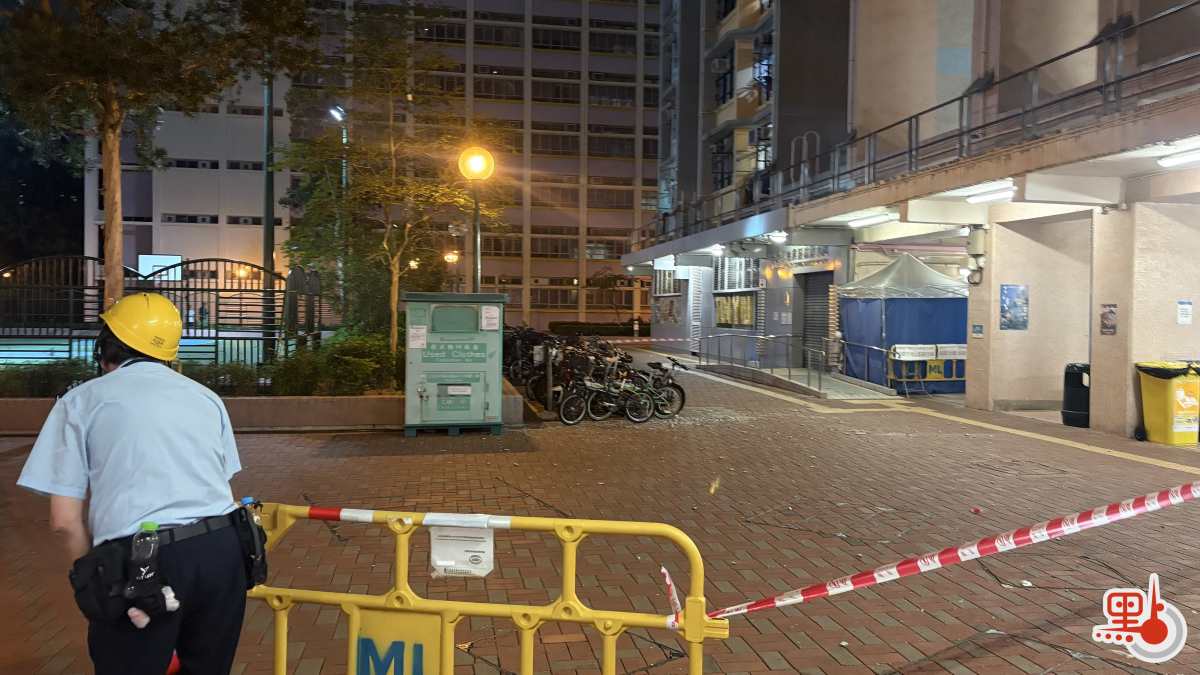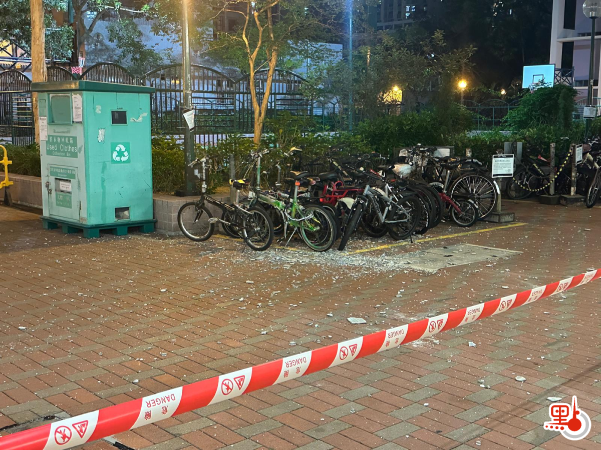 【點新聞報道】天水圍有大樓冧石屎。事發前日(27日)傍晚時分,天耀邨耀豐樓外牆疑大片石屎剝落跌地,幸無人受傷,惟路邊十多輛單車被石屎擊中。
