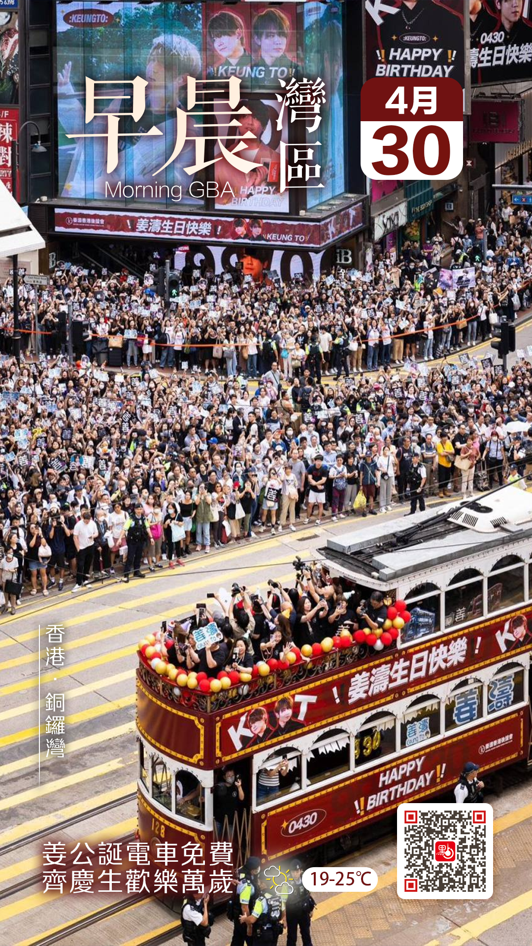 今日上午,姜濤香港後援會將延續慶生傳統,「姜濤號」會從屈地街車廠出發,駛往「姜濤灣」(銅鑼灣),與市民及樂迷見面。粉絲可於銅鑼灣、皇室堡、銅鑼灣地帶、東角LAFORET等地點打卡或參與慶生活動。