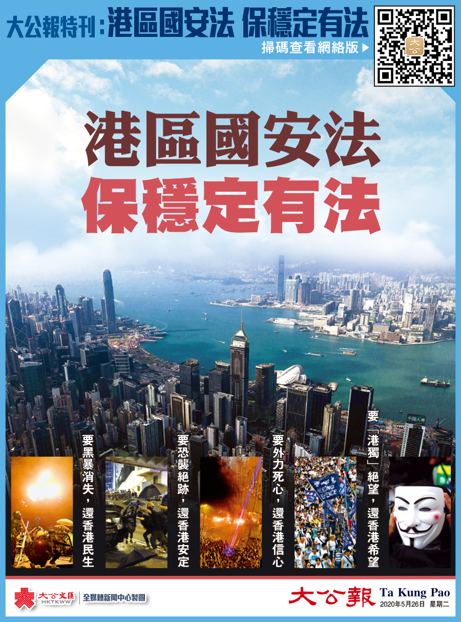大公報今日隨報附送《港區國安法 保穩定有法》特刊
