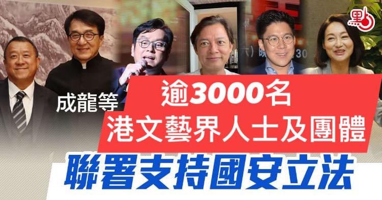 文化演藝界逾3000人聯署 支持訂立「港區國安法」