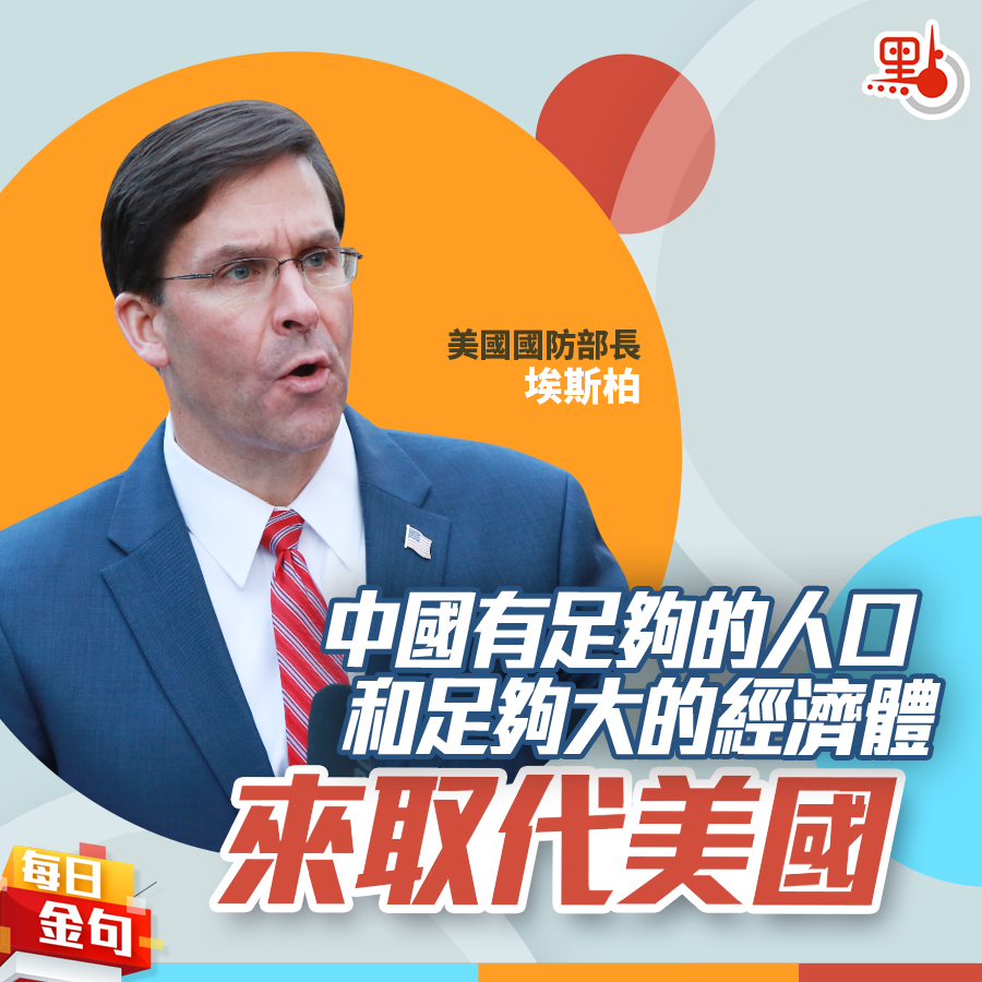 每日金句|埃斯柏:中國有足夠的人口和足夠大的經濟體取代美國