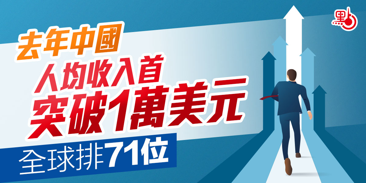 國家統計局國際統計信息中心主任張軍發表署名文章。文章指2019年中國人均國民總收入進一步上升至10410美元,首次突破1萬美元大關,高於中等偏上收入國家9074美元的平均水平,世界排名升至71位,較2000年提升70位。