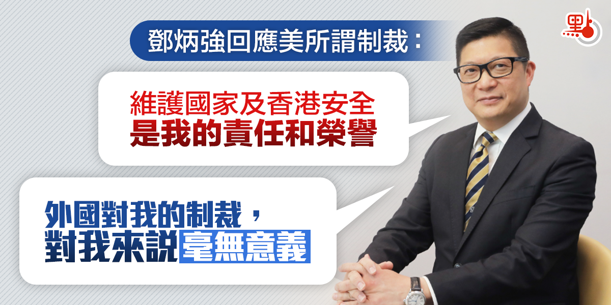在美國財政部公布的對中國內地及香港官員實施制裁名單中,包括香港警務處處長鄧炳強。鄧炳強今日回應時說:「維護國家及香港的安全是我的責任和榮譽,外國對我的制裁,對我來說毫無意義,我會繼續專心做好維護國家及香港安全的工作。」
