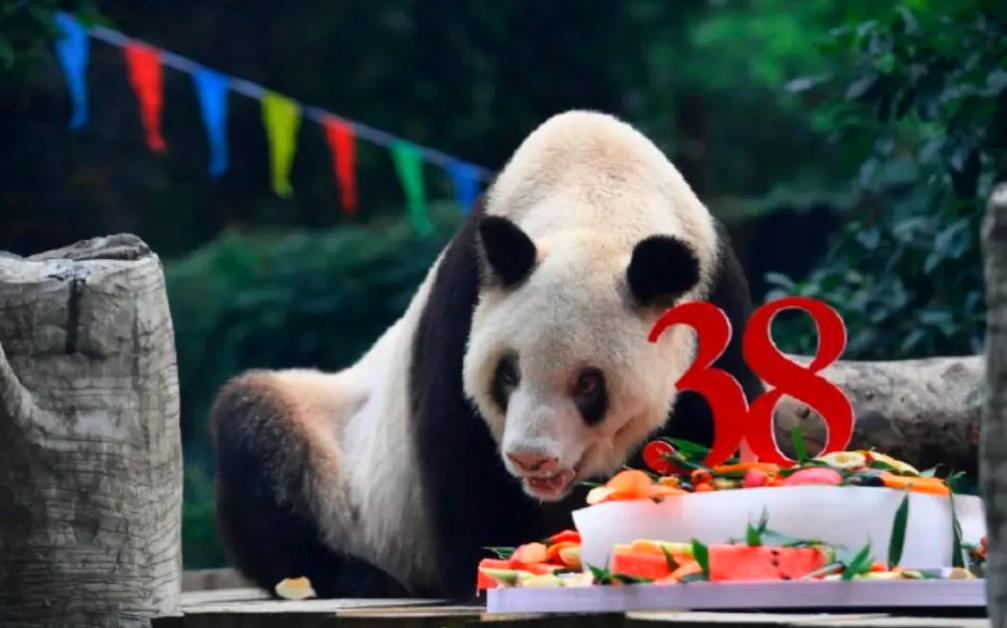 6.重慶動物園為世界上現存年齡最大的圈養雌性大熊貓「新星」慶祝38歲生日,相當於人類年齡110歲至140歲。
