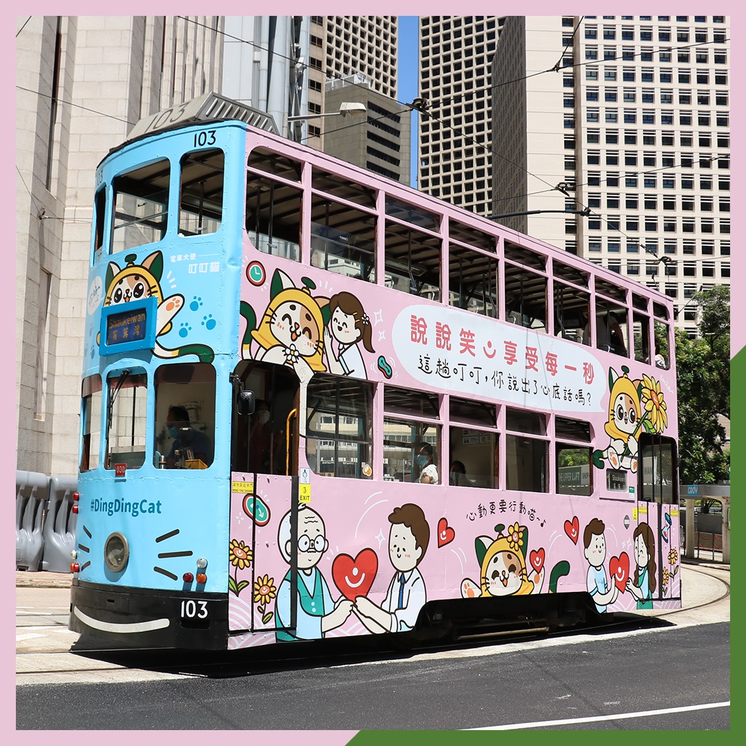 除此之外,叮叮貓亦現身於新推出的兩架叮叮貓電車。電車公司稱,抗疫期間,盼市民注意身心靈健康,專注「看、聽、呼吸、說笑」4種感覺。於車廂當眼位置,電車公司貼出叮叮貓告示,提醒公眾注意個人衞生和車廂清潔。