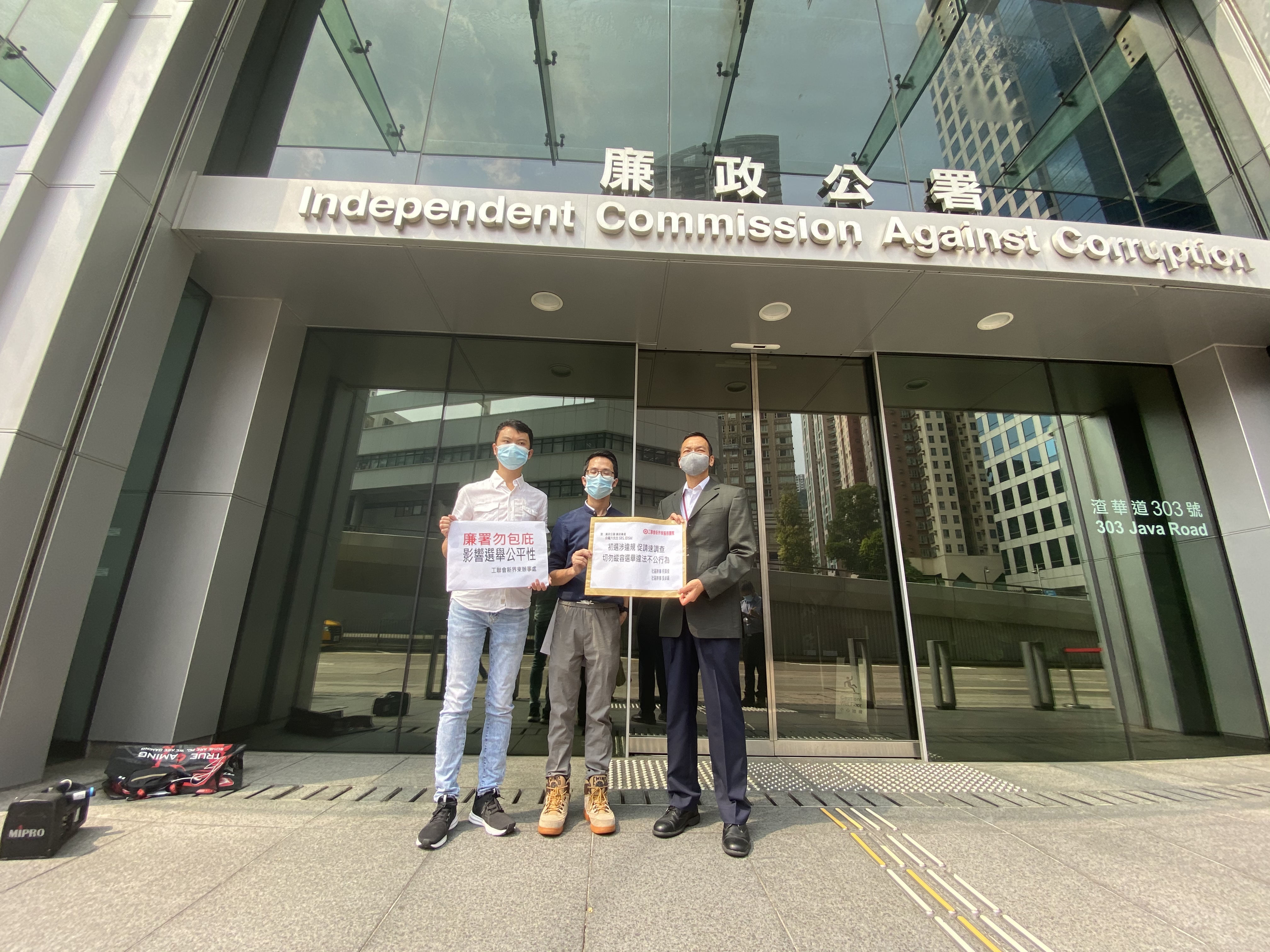 工聯會新界東社區幹事吳卓穎及何偉俊,下午到北角廉署請願,他們高舉「廉署勿包庇 影響選舉公平性」、「初選涉違規 廉署速調查」等標語。工聯會認為,「初選」涉嫌觸犯《選舉(舞弊及非法行為)條例》,例如有部分媒體曾舉辦「初選」論壇,涉嫌構成非選舉開支代理人招致的選舉開支;亦涉及公然操控參選權,剝奪他人的被選舉權等眾多性質惡劣的違法行為。