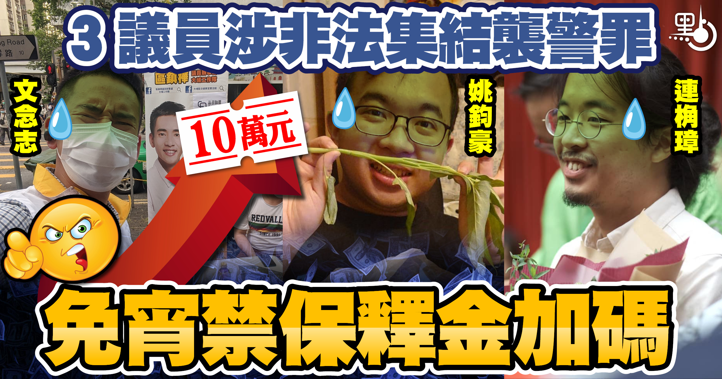 3議員涉非法集結襲警罪 免宵禁保釋金加碼