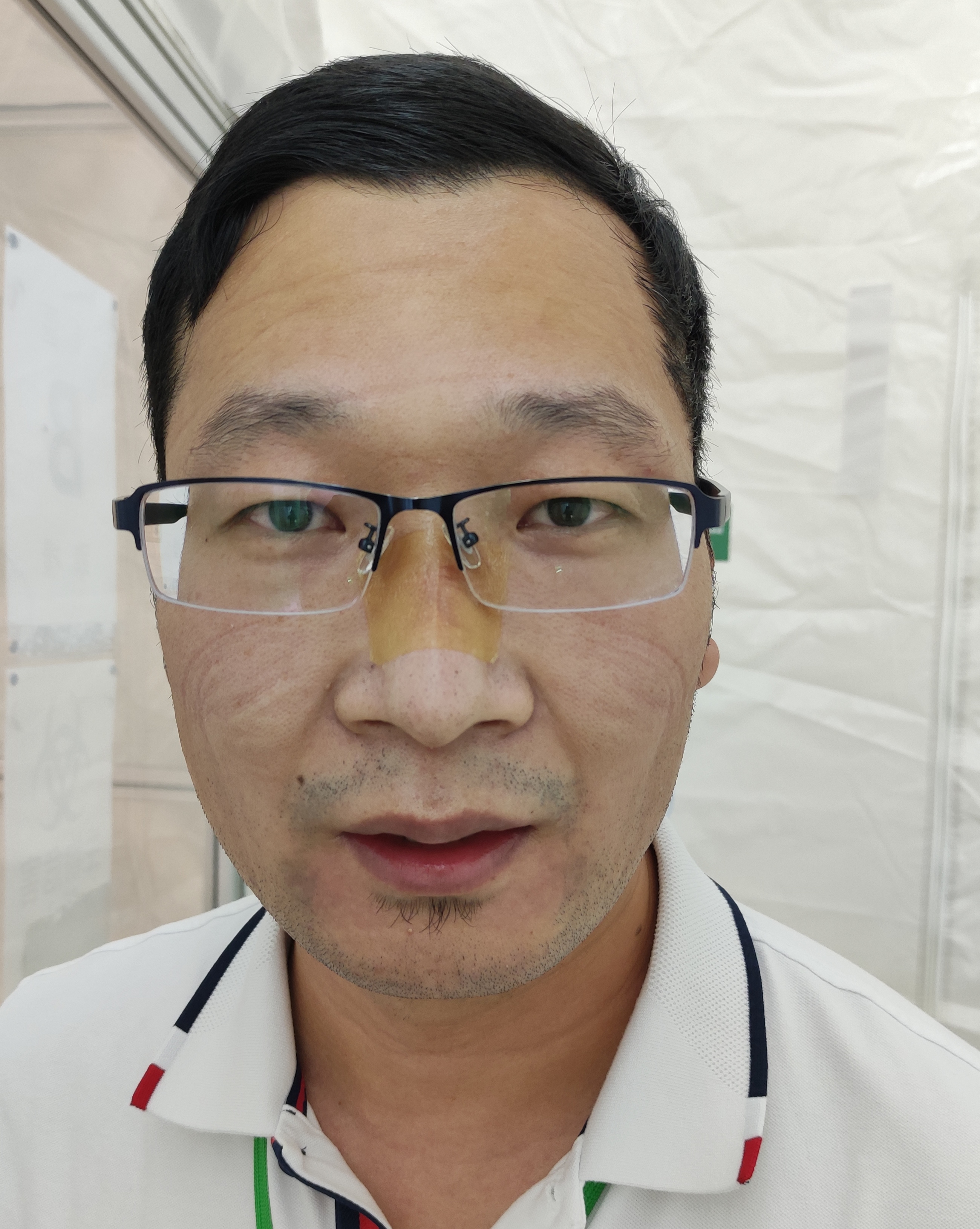 連續幾天12小時班,自己後背、右手大拇指及左手手背疼痛持續加劇,鼻樑被N95口罩壓破皮,但是心裏告訴自己,一定要堅持,作為一名檢驗人、一名支援隊隊員,要有不怕苦不怕累,敢於不斷挑戰自己的精神,這是光榮的使命,必須保證完成任務。同時隊員們互相打氣,鼓勵,彼此給對方按摩背部,緩解背部疼痛。也向彼此傳授自己取樣的小經驗,如:拇指旋鈕開帽子可以明顯提高開試管帽子速度等,大家互相配合,取樣效率大大提高。當天僅我們B倉白班12小時就完成兩萬三千多標本取樣。回到酒店吃完飯,洗澡、洗衣服後已經二十三點三十分,開始休息,躺在牀上由於背痛,睡幾個小時會痛醒,擰一下後背,稍微舒服一點繼續睡,整個晚上斷斷續續直到天亮。