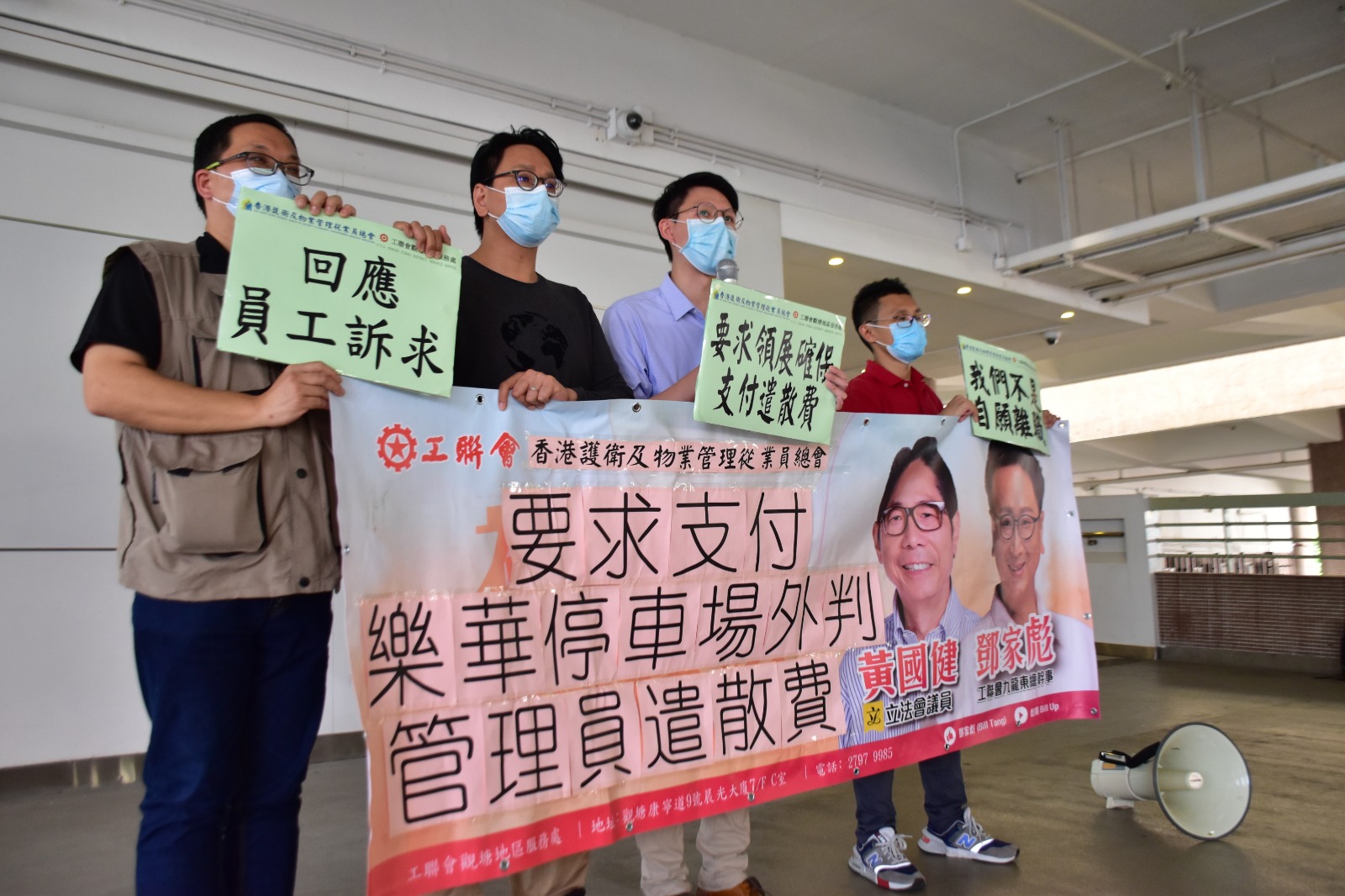 工聯會收到來自觀塘樂華邨停車場外判員工求助,指有關服務合約將於今年十月三十一日完結,但現職公司富城物業管理有限公司(下稱「富城」)拒絕向合資格員工支付遣散費,更向員工施壓要求簽署自願離職書,有違企業良心,有別於過去停車場承辦商做法。員工對此表示強烈不滿。