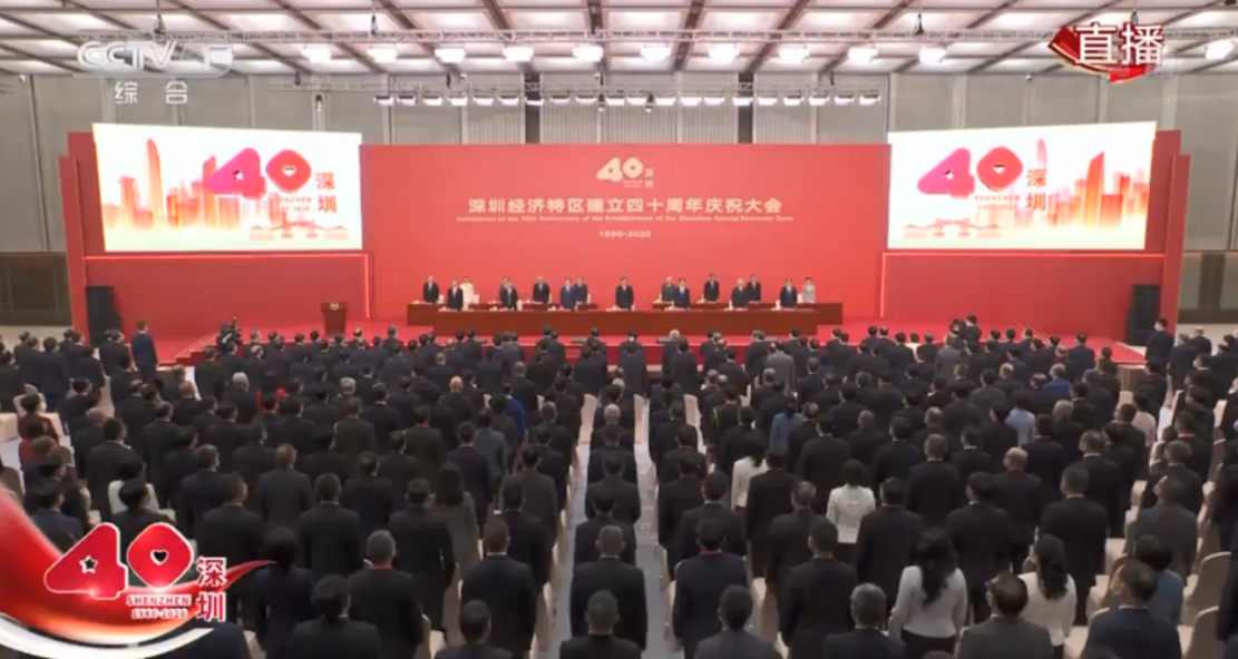 深圳經濟特區建立40周年慶祝大會於14日上午在前海國際會議中心舉行,現場826把座椅坐滿,826把椅子寓意特區在1980年8月26日誕生。