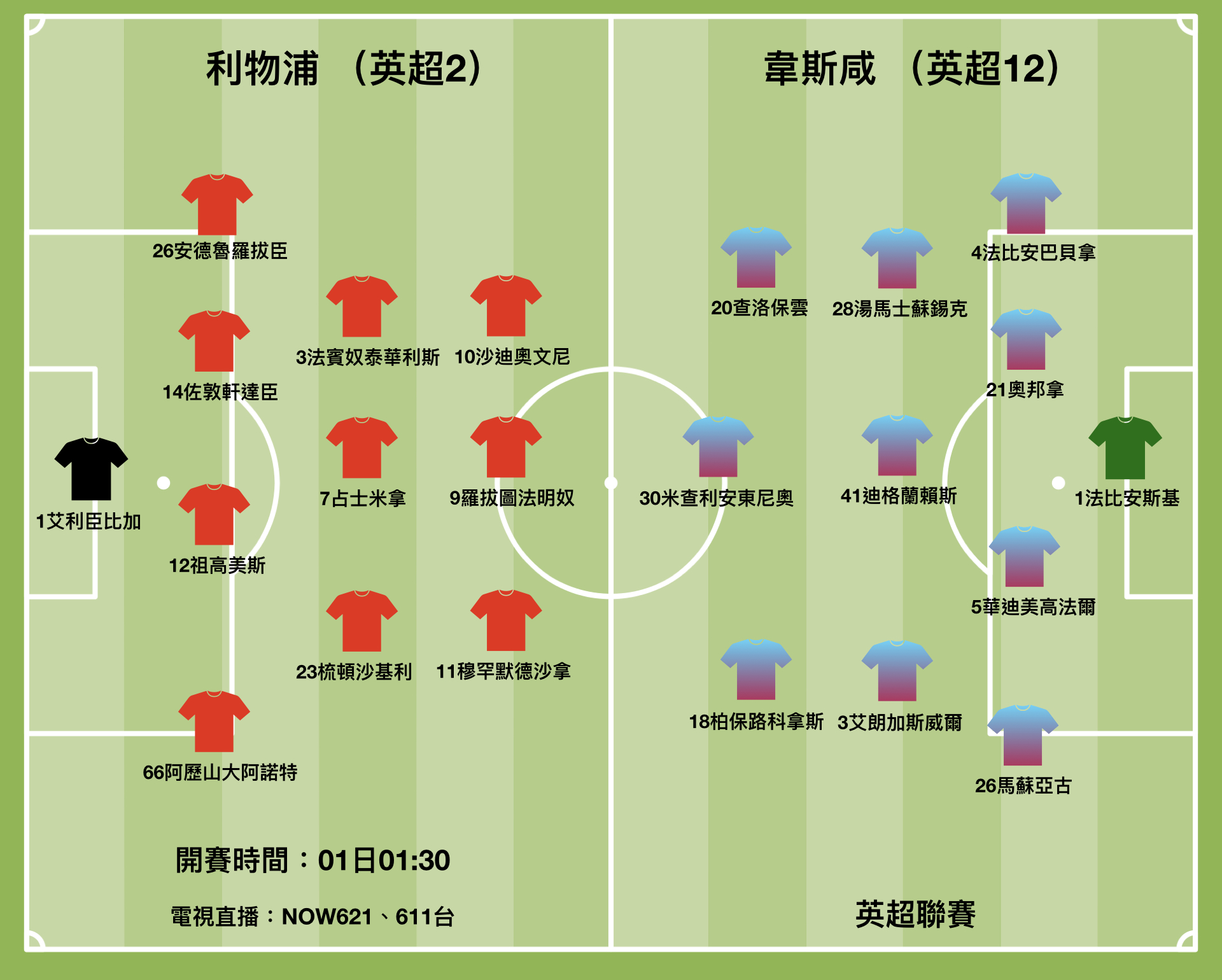 利物浦不經不覺已錄得三連勝,歐聯贏阿積士1︰0、贏米迪蘭特2︰0以及英超反勝錫菲聯2︰1,都展示出他們班底的「卡士」。奈何客串中堅的法賓奴泰華利斯又因傷缺陣,主帥高洛普確要為中堅人選頭痛。有說新秀利斯威廉斯可擔當重任,但回想利物浦在世冠盃時,曾經以隊長佐敦軒達臣打中堅,而且效果也相當稱職,高帥或可再讓「軒隊」「重彈舊調」,起碼在臨場經驗上,這樣的防守組合較為合理。由於梳頓沙基利已經復出,加上迪亞高祖達和南野拓實都可在前鋒上支援「埃及文明」組合,中場老將占士米拿仍可「頂兩嘢」,利斯威廉斯再在主力隊學習一輪才在英超上陣會較妥當。利物浦主將沙拿近況對辦,加上迪亞高祖達已融入隊中,他們應不愁入波。